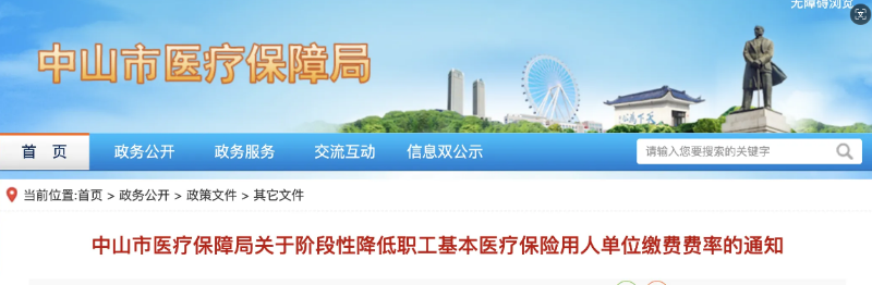 广东省中山市,医疗保障局于3月20日发布《关于阶段性降低职工基本医疗保险用人单位缴费费率的通知》。