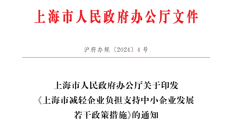 3月29日,上海市人民政府发布了《上海市减轻企业负担支持中小企业发展若干政策措施》,该《措施》自2024年3月23日正式执行,有效期至2024年12月31日。