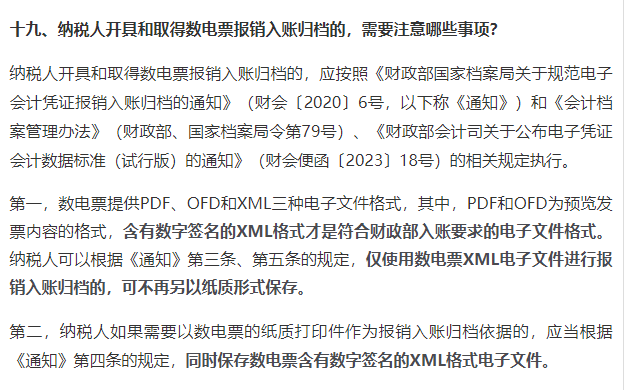 2、仅使用数电票XML电子文件进行报销入账归档的,无需再打印纸质版数电票。