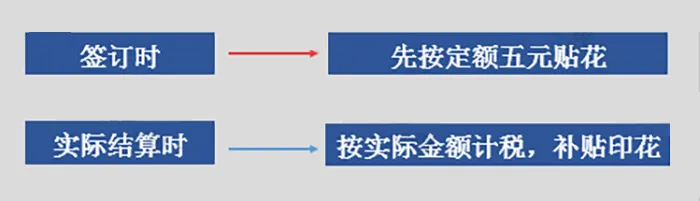 根据规定印花税纳税义务发生时间是在合同书立时贴花,如果按实际交易发生了才缴税,相当于没有按期缴纳印花税,一旦被查,风险极大。